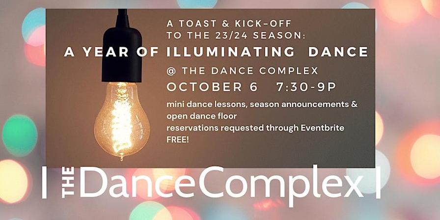Join The Dance Complex in a free, informal celebration on Friday, Oct. 6 to welcome the coming season's events, performances plus resident and visiting teaching artists. The gathering will include a taste of one of their new series of events, Friday Night Light. Doors will open with special mini-dance lessons from some of the resident teaching artists as well as the opportunity to take to the dance floor. Additional surprises are being planned, including the growing roster of artists joining this season for performance, for conversation and for the ongoing learning of dance from cultures the world over. A sparkling toast will be provided, with other beverages for purchase.