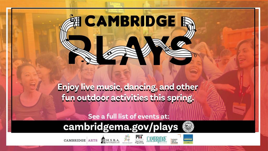 Cambridge Plays offers free music, dance, yoga and other activities to watch or join in. From April to the end of June, in neighborhoods across Cambridge, enjoy hip-hop, jazz, high-energy bhangra dancing from India or pop-up dance parties that arrive via DJs pedaling a trike music cart. Events are open to all plus fun for all ages and abilities.