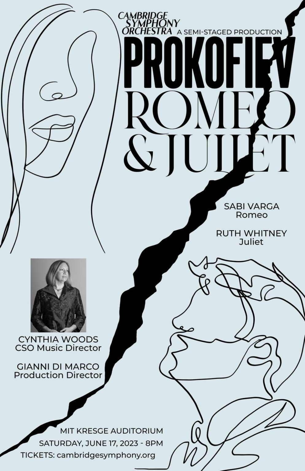 Saturday, June 17, under the leadership of Cynthia Woods, Cambridge Symphony Orchestra (CSO) performs a semi-staged version of Prokofiev's "Romeo and Juliet," a romantic favorite, choreographed and produced by Gianni Gino Di Marco, former principal dancer of the Boston Ballet. Cambridge Symphony Orchestra's rendition of "Romeo and Juliet" promises to be a captivating journey through the complexities of passion and destiny. Through an evening of music and dance, the performance will explore themes of power, violence plus the struggle for personal freedom and love through a rigid feudal world controlled by powerful and wealthy families. Tickets can be purchased online.