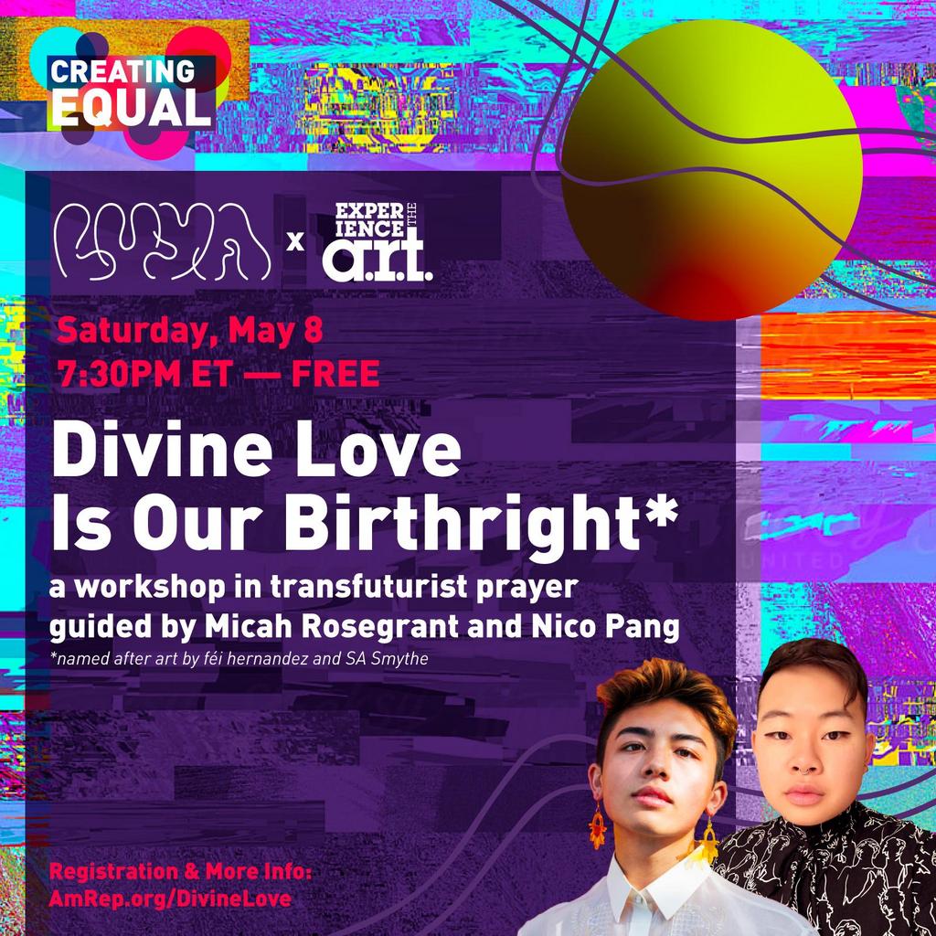 How does an individual render space and beauty for themselves out of the English language’s colonial landscape? As previously discussed by Adrienne Maree Brown with Octavia Butler, how can prayer be a place to “shape God [and] shape change?” In this workshop on Saturday, May 8, Micah Rosegrant and Nico Pang invite participants into their practice of trans-affirmative spirituality. Then, together everyone will explore poetry and spoken word as sites for imagining queer and trans futures.