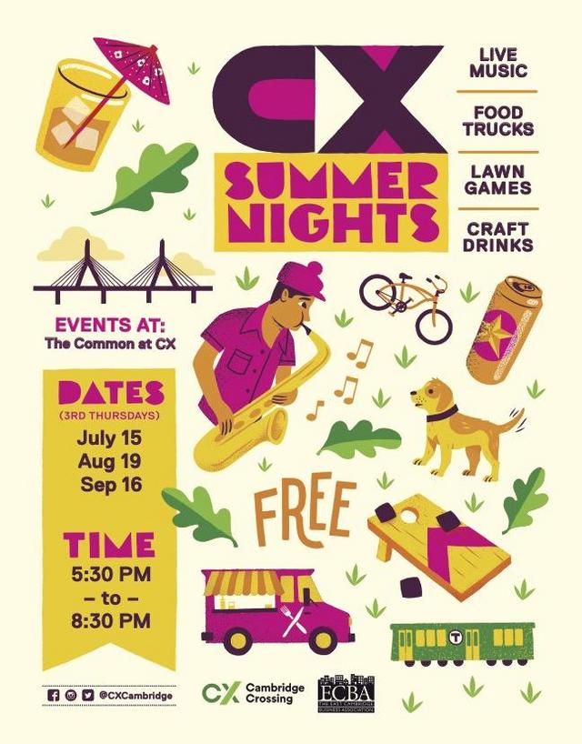 CX Summer Nights continues on Thursday, Aug. 19. Cambridge Crossing hosts free outdoor concerts every third Thursday in July, August and September. Join for food trucks, lawn games plus live music accompanied by a revolving lineup of local brews. There will also be opportunities to support the Cambridge non-profit community.
