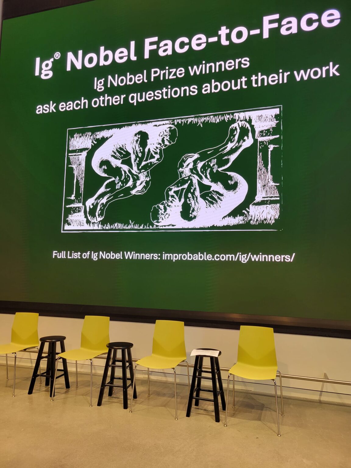 Join the MIT Museum for an Ig Nobel Prize companion event, Ig Nobel Face-to-Face. The very first Ig Nobel ceremony was held in the former MIT Museum building in 1991. Today, the MIT Museum is excited to host a new twist on this popular celebration of scientific achievement in our their space. Ig Nobel: Face to Face brings 2025 Ig Nobel Prize winners together, in-person, with the opportunity to ask each other questions about their work, and answer questions from the audience. The event will be hosted by Improbable Research Founder Marc Abrahams. The Ig Nobel Prizes celebrate ten achievements so surprising that they make people laugh, and then think.