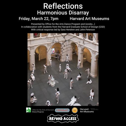 A work in stillness and slowness, "ON DISPLAY HARVARD" was presented at Harvard Art Museums on December 3, 2023, in honor of International Day of Persons with Disabilities. (snobs._) and student collaborators from the Graduate School of Design (GSD) drew inspiration from that movement installation to create transformable objects titled "Reflections: Harmonious Disarray," an exploration of the relationship between time, movement and design.