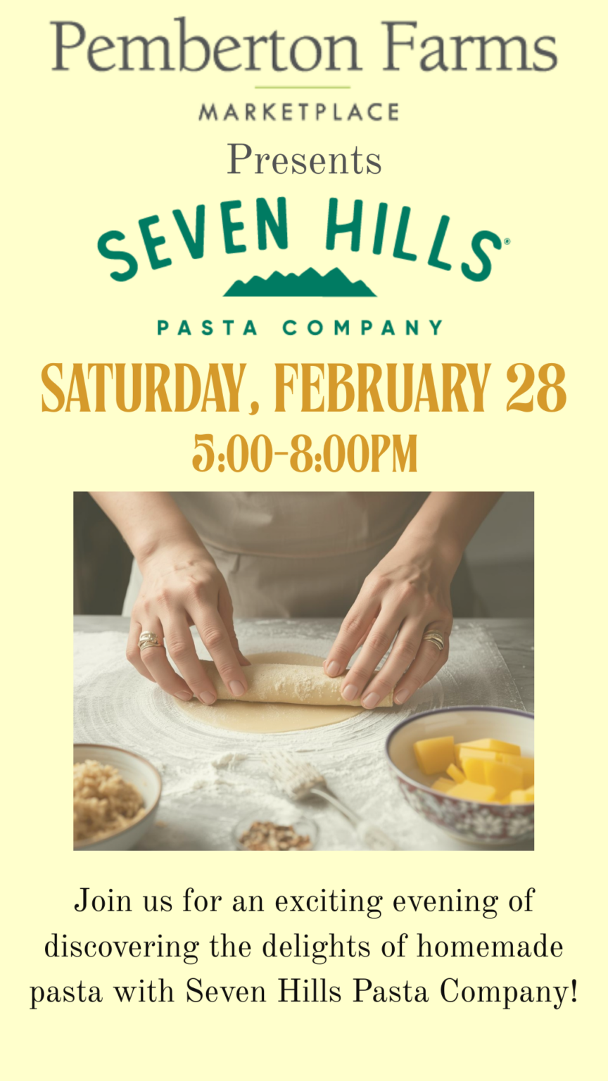 Get ready to knead! Head to Pemberton Farms for a hands-on pasta making class led by Seven Hills Pasta Company!