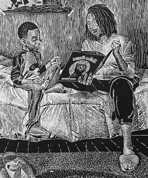 Saturday, Mar. 16, join Harvard Art Museums in the galleries of the special exhibition "LaToya M. Hobbs: It’s Time" for a half-hour of stories read by a youth librarian from the Cambridge Public Library! All ages are welcome. This exhibition (on view through July 21) features LaToya M. Hobbs’s life-size suite of woodcuts titled "Carving Out Time." Unfolding over five scenes, the prints depict one day in Hobbs’s life with her family, including story time before bed.