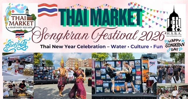 The highly anticipated Thai Market Songkran Festival 2026 will take place in the heart of Harvard Square, bringing together the rich traditions of Thailand with a lively, family-friendly atmosphere. Hosted by Nathika Events, in partnership with the Harvard Square Business Association, this annual celebration invites the community to experience the beauty of Thai culture through food, performances, and interactive activities.
