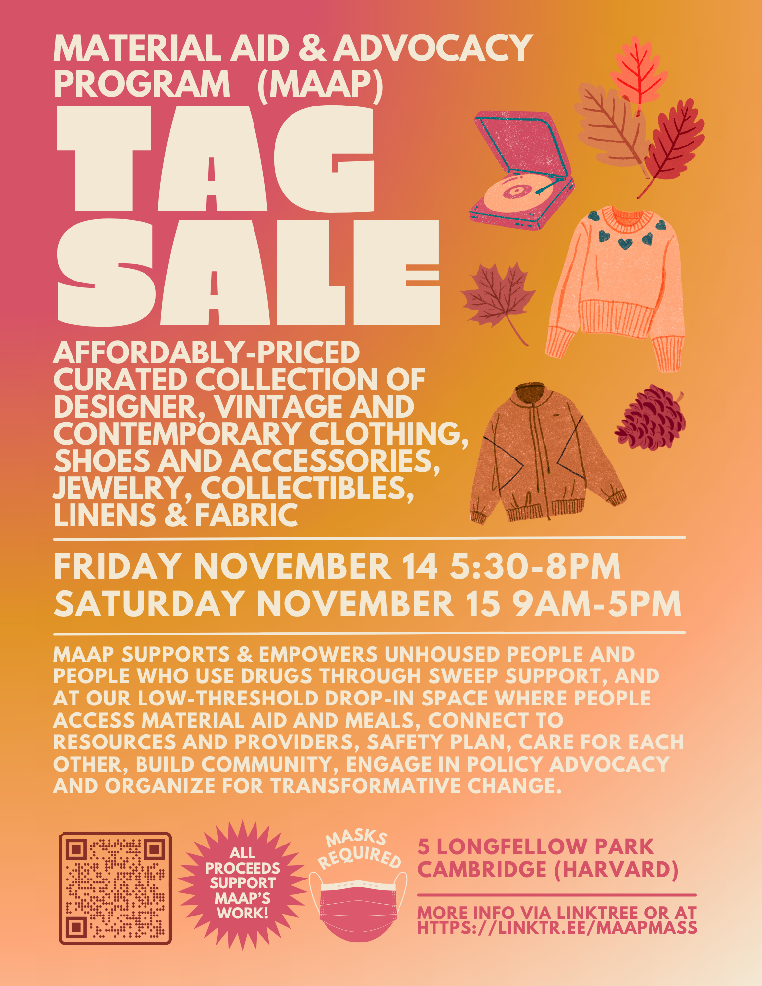 Join MAAP's twice-yearly tag sale—shop cheap designer labels and vintage wares while helping support unhoused community members! MAAP holds twice