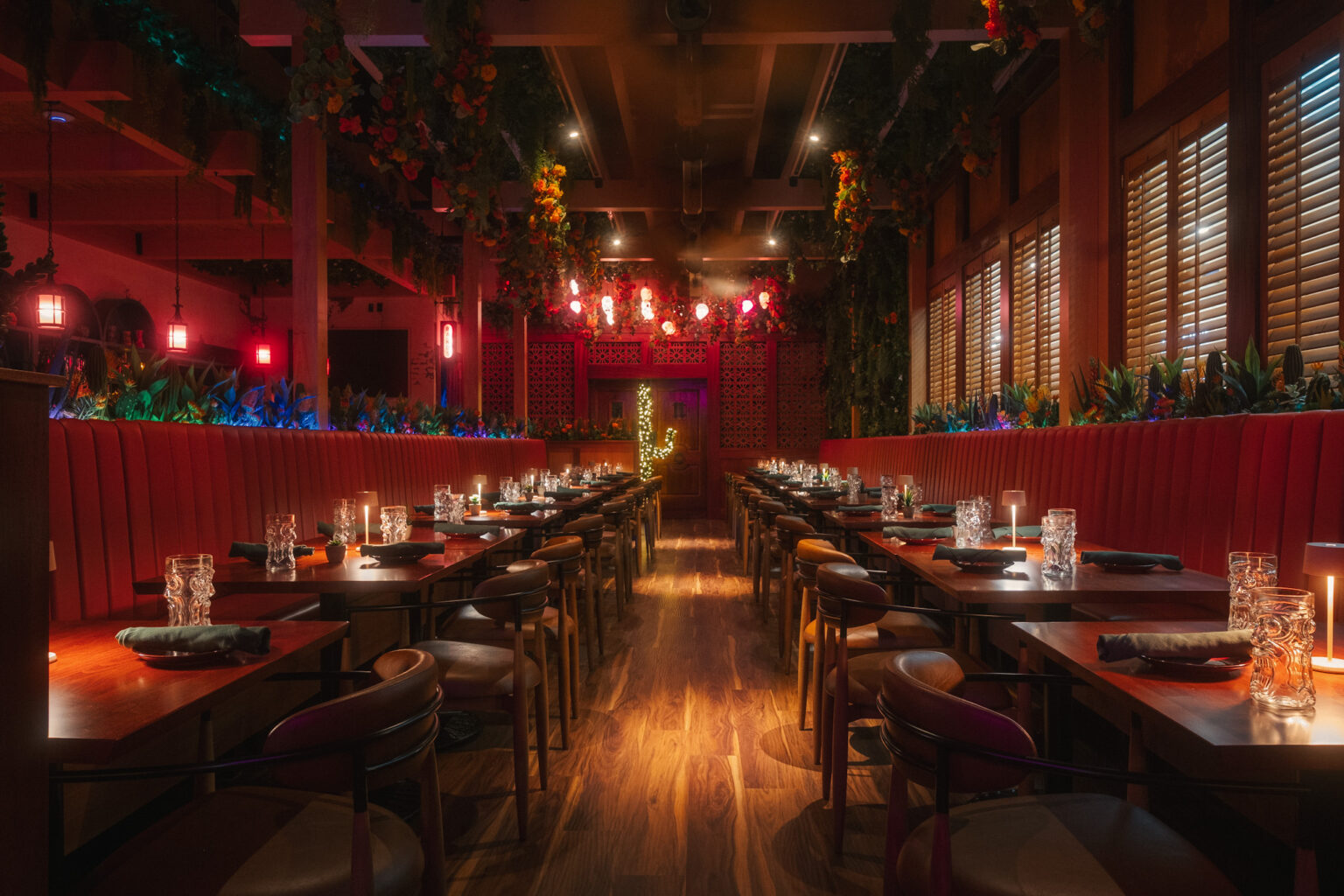 Gato Exotico is designed to feel like a journey into Mesoamerica with hand formed terracotta tiles, lush Latin American florals, and warm natural textures throughout the dining room. The atmosphere mixes greenery, soft light, and clay finishes to create a welcoming setting for both daily meals and celebrations. Two private dining rooms are hidden within the space and feature Aztec inspired stonework and carved details. The goal is to offer guests a sense of discovery and to create an escape while keeping the spirit of Latin American hospitality at the center of the experience.