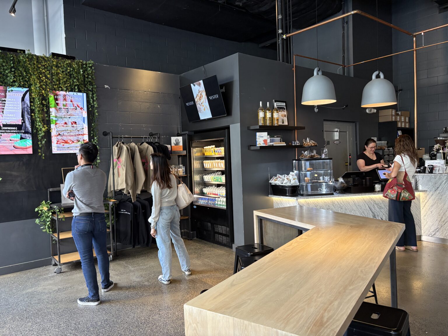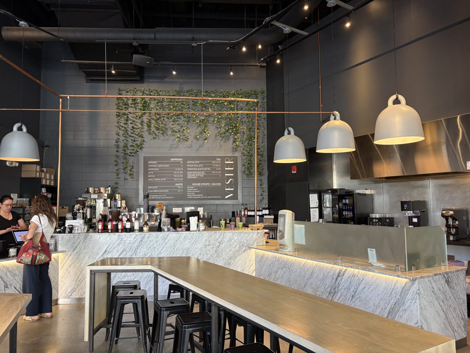 An international cafe, Vester Cafe in Kendall Square, offers a chic environment for guests to enjoy food and drinks with friends or to be productive. Vester Cafe serves coffee and pastries with many additional food options, including donuts, a chicken caesar salad wrap, a cheeseburger and more.